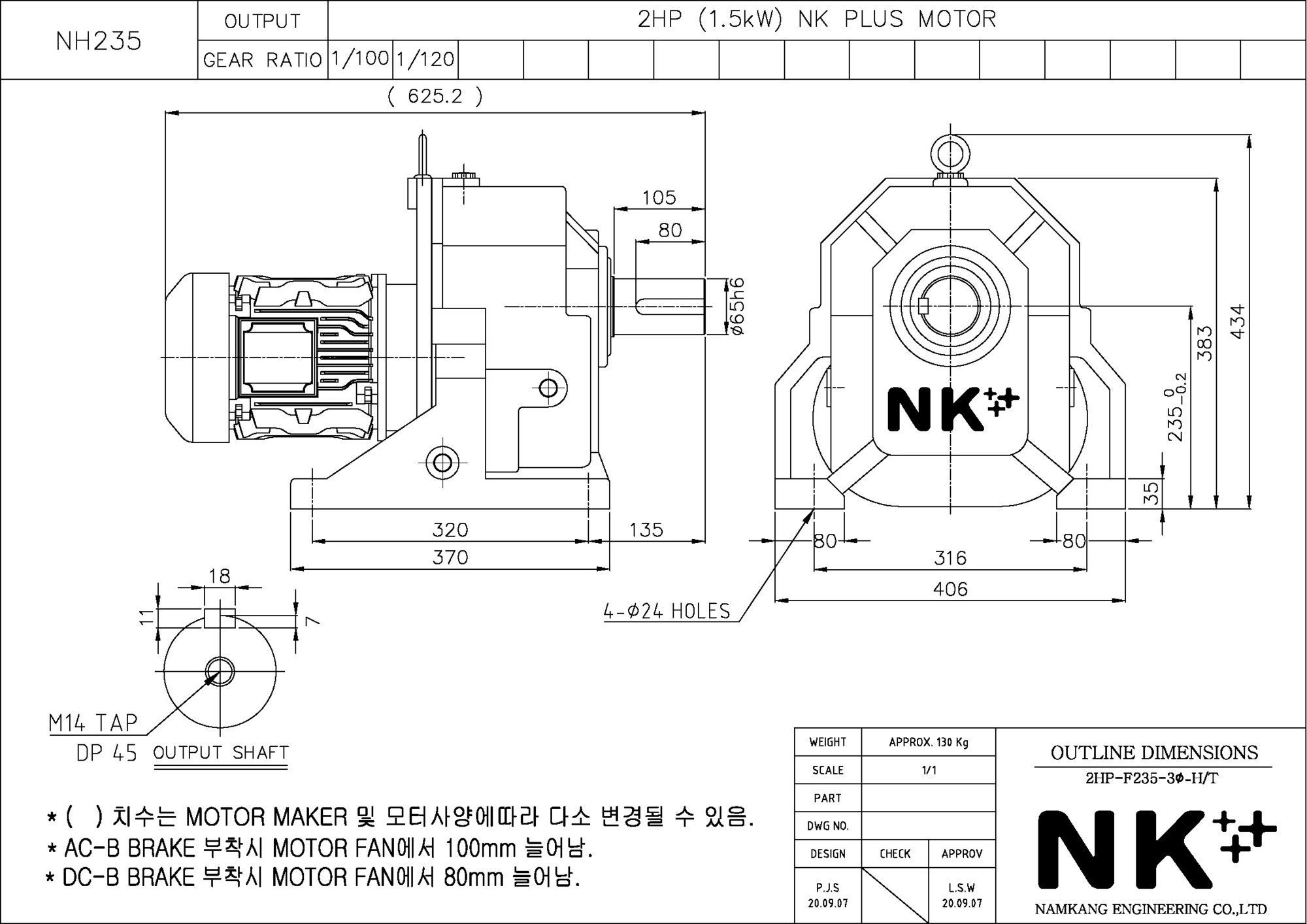 - NK PLUS MOTOR (남강 자사모터), 효성모터, 하이젠모터 적용
