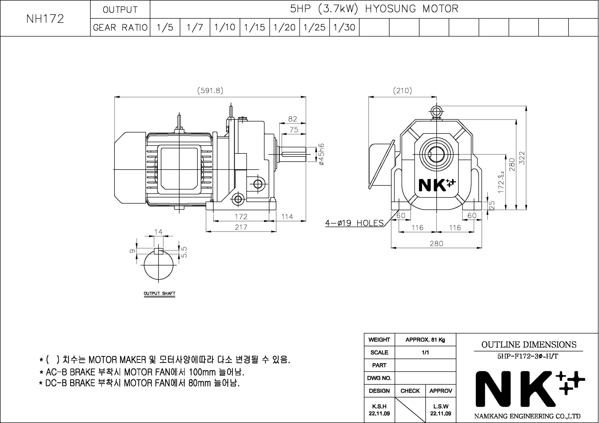 - NK PLUS MOTOR (남강 자사모터), 효성모터, 하이젠모터 적용