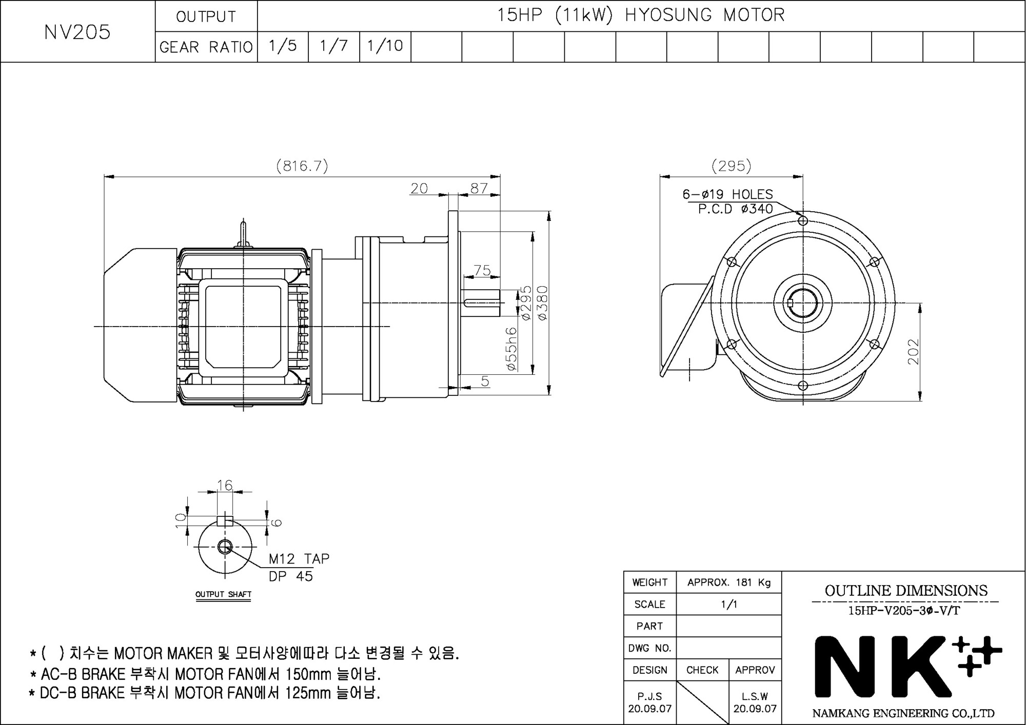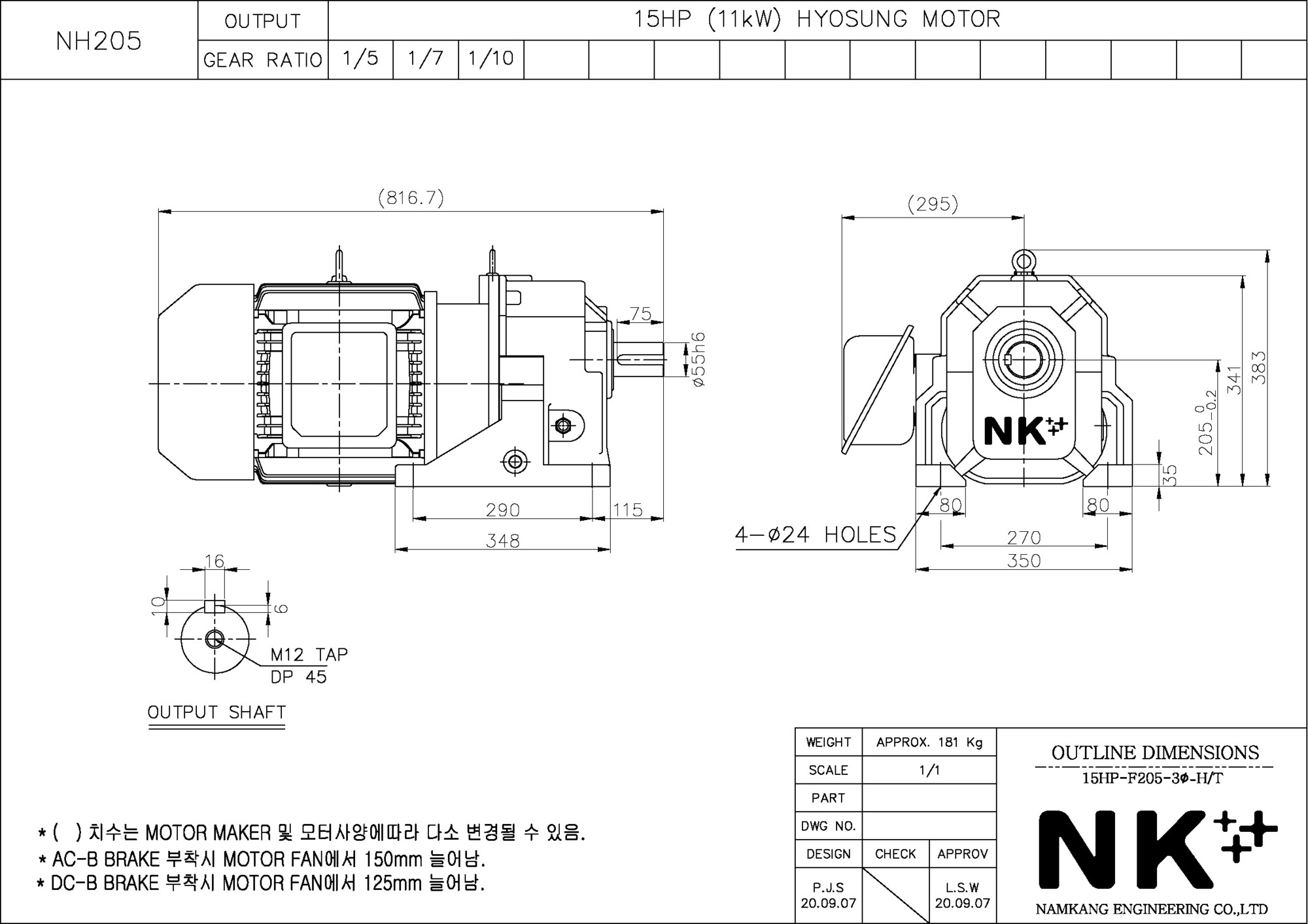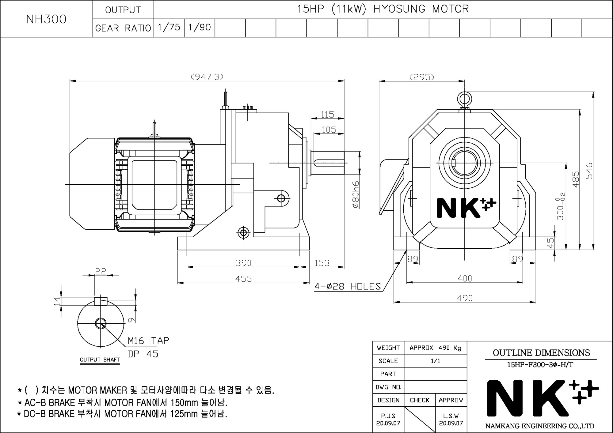 - NK PLUS MOTOR (남강 자사모터), 효성모터, 하이젠모터 적용